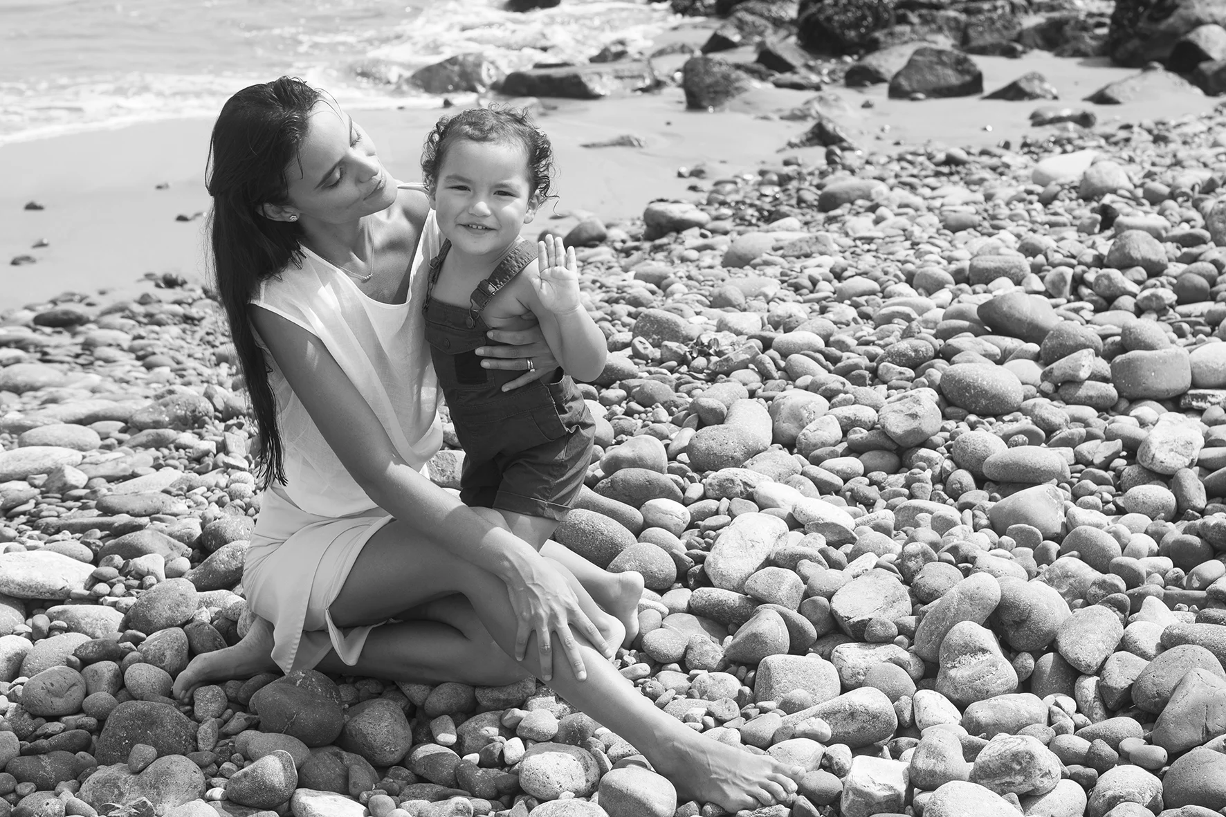Así como sus viajes empezaron, la trajeron de vuelta a su hogar. Giulliana termina de afinar sus últimas poses en la arena y Leoncito la mira atentamente. Nos ha acompañado en toda la sesión para también formar parte de ella. Él es el motor y motivo de su madre.