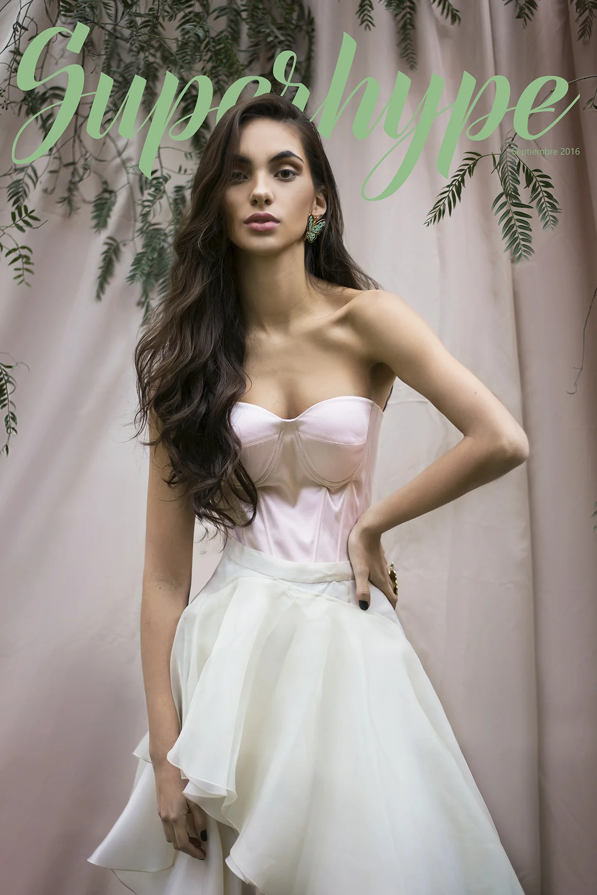 Falda y corset, CAROLINA TOLA. Aretes, anillo mariposa y zapatos, JESSICA BUTRICH.